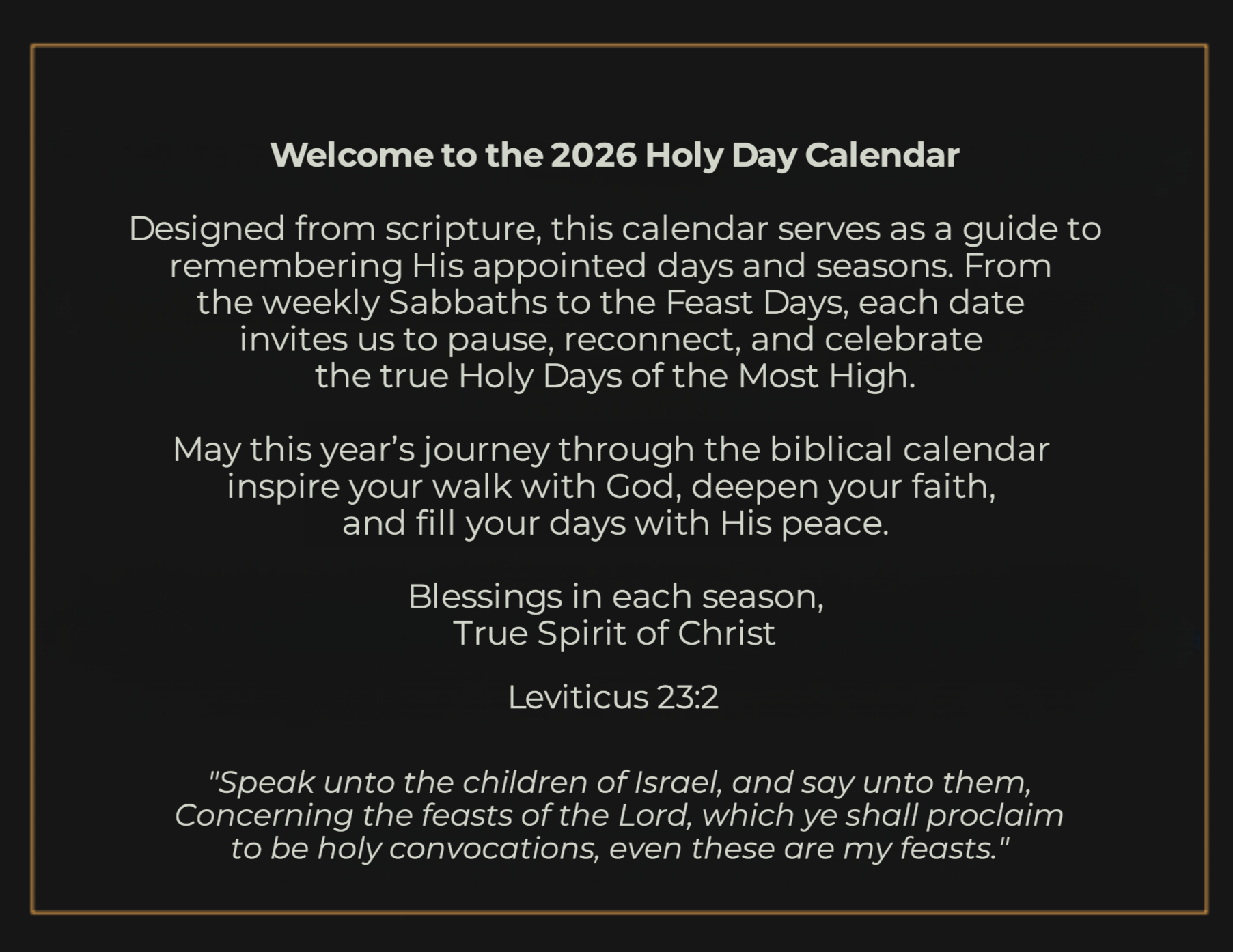This calendar has been created to inform you about the upcoming holy days so that you and your family can prepare accordingly!
